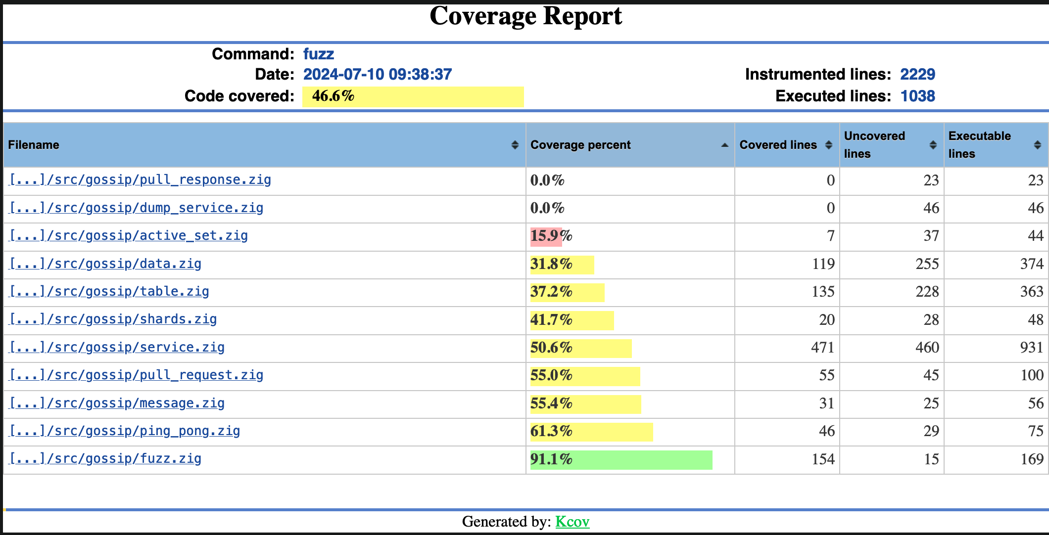 We also support kcov to give coverage information on what was and was not fuzzed: